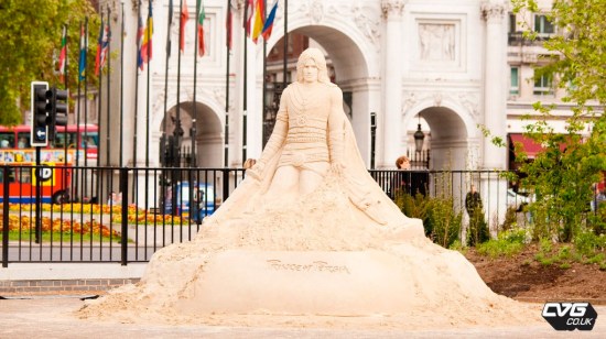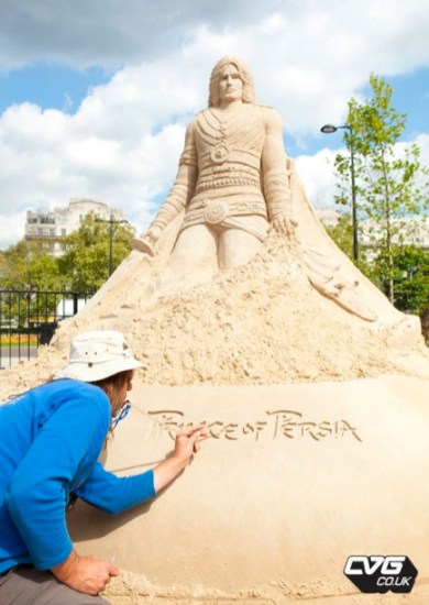 Ubisoft had a twelve foot sand sculpture of someone built in London this week, in anticipation of their release of the latest game regarding the exploits of a certain royal heir: Prince of Persia: Forgotten Sands.