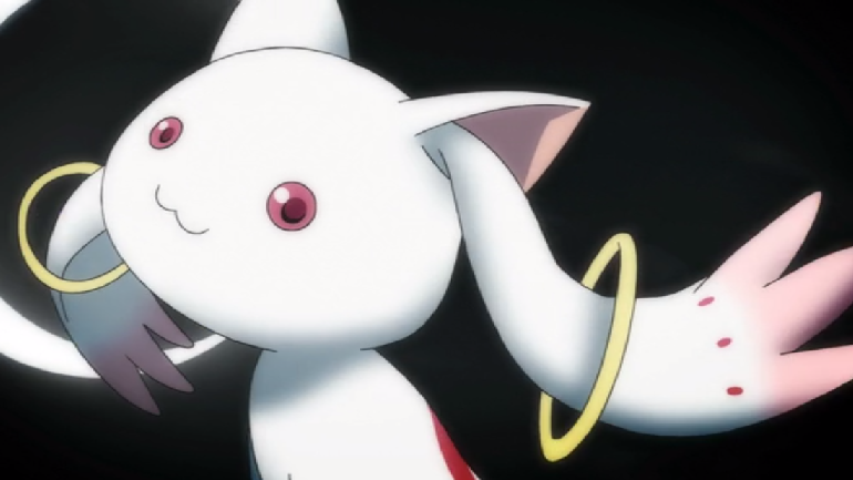 So, before we get into the meat and potatoes of our narrative, let’s talk a bit of brain biology. This species-wide cognitive process suggests a lack of amygdala: a subcortical structure that exist in both hemispheres of our monkey brains that specialize in the processing of emotions, particularly fear. Perhaps just as relevant, the amygdala plays an essential part in the processing of human body and facial language, and is often attributed to sociability. Kyubey’s species, through any variety of factors have simply evolved out of or without the need of one… or at least one that is highly underdeveloped compared to us. And so, we wind up with a blank-faced Übermensch with no need for social cues that are totally independent of one another, even to the point of being able to consume bodies that they can simply take their consciousness out of when need be.