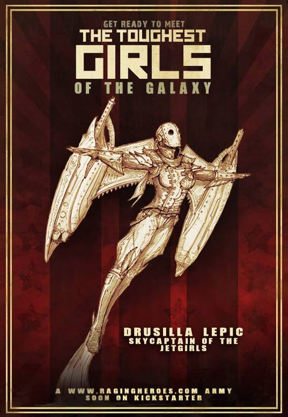 The line of miniatures is called “The Toughest Girls of the Galaxy,” and it consists of three all-female armies—Heroines, Troops, and Supports—fit for gaming, painting, or collecting. Over 150 individual figures are planned, including soldiers, military officers, and field medics. (My own personal favorite: “Drussila Lepic, Skycaptain of the Jetgirls.”) On their Kickstarter you can check out several sculpts, plus concept art for future figures. As you can see, while some of the characters sport the traditional armored bikini look, others rock different, more covered, outfits during battle. Yay for variety!
