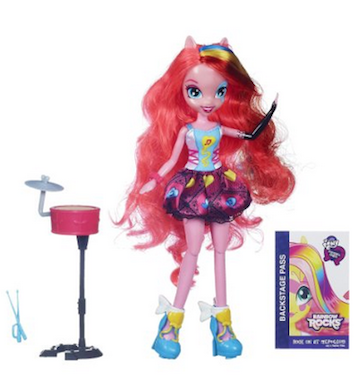 High school all-girl rock band? Sounds like pretty much the best thing ever. Here’s what the Pinkie Pie and Twilight Sparkle singing toy dolls look like, by the way.