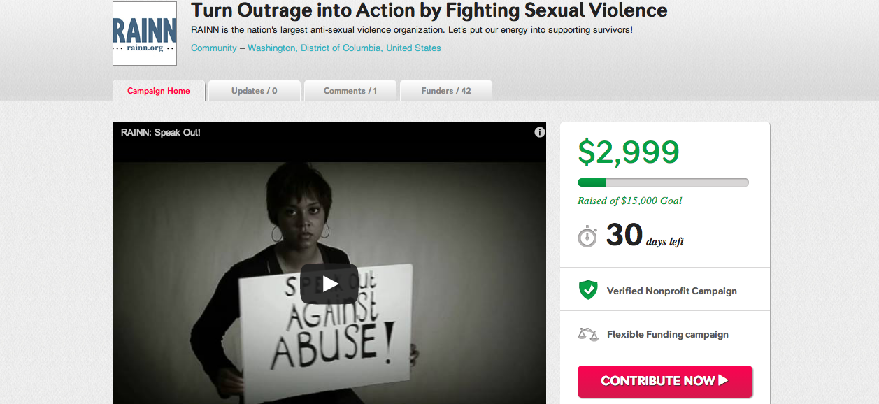 RAINN Indiegogo Campaign Works to Raise Money for Victims of Sexual Violence