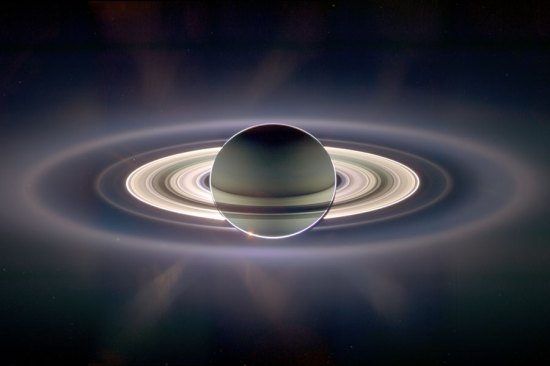 From NASA’s Astronomy Picture of the Day, the Cassini spacecraft drifted in Saturn’s shadow for around twelve hours while looking back toward the eclipsed sun, and captured the above photograph. NASA explains: