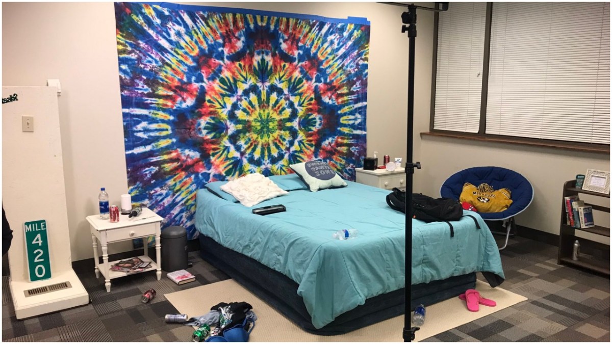 The tweet quickly went viral for Hulsey’s absurd mock-up of a teenage bedroom. Looking at the image, this is quite clearly a hastily thrown together set piece in the corner of a commercial office. It also leans heavily on every stoner cliché there is, from a massive tie-dye wall hanging to a sign that reads “Mile 420.” Whoever this “teen” is, they sure aren’t hiding their love of weed from this ace reporter. There’s a lot to unpack here: unopened soda cans, a bra on the floor, a Lauren Conrad book, the barest of bookshelves, the industrial carpet. Print magazines?! I doubt a teenager even set foot in this room.