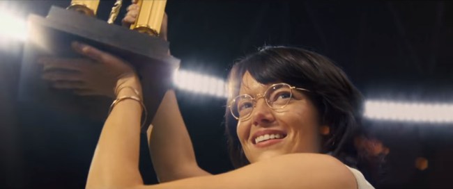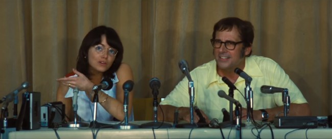 Carell is surprisingly heartbreaking as Riggs. I say “surprisingly,” because I came into the film expecting to hate this guy. However, through Carell’s nuanced portrayal we understand that Riggs was a man who was so desperate to be liked that he would spout anything to get attention. As Billie Jean wins their historic match, there’s a moment where you truly feel sorry for this guy and the devastation he feels, not only over the match, but over his whole messy life.