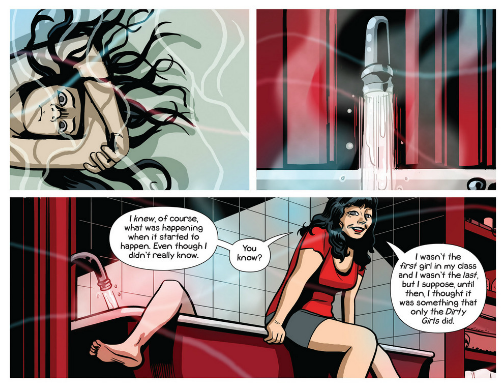 As origin stories go, this one manages to be both fairly mundane and deeply fascinating. Mundane because Suzanne doesn’t do anything particularly spectacular with her power in this issue—she discovers it at the same time we all tend to discover our own sexuality, and in a way that is just intimately familiar.