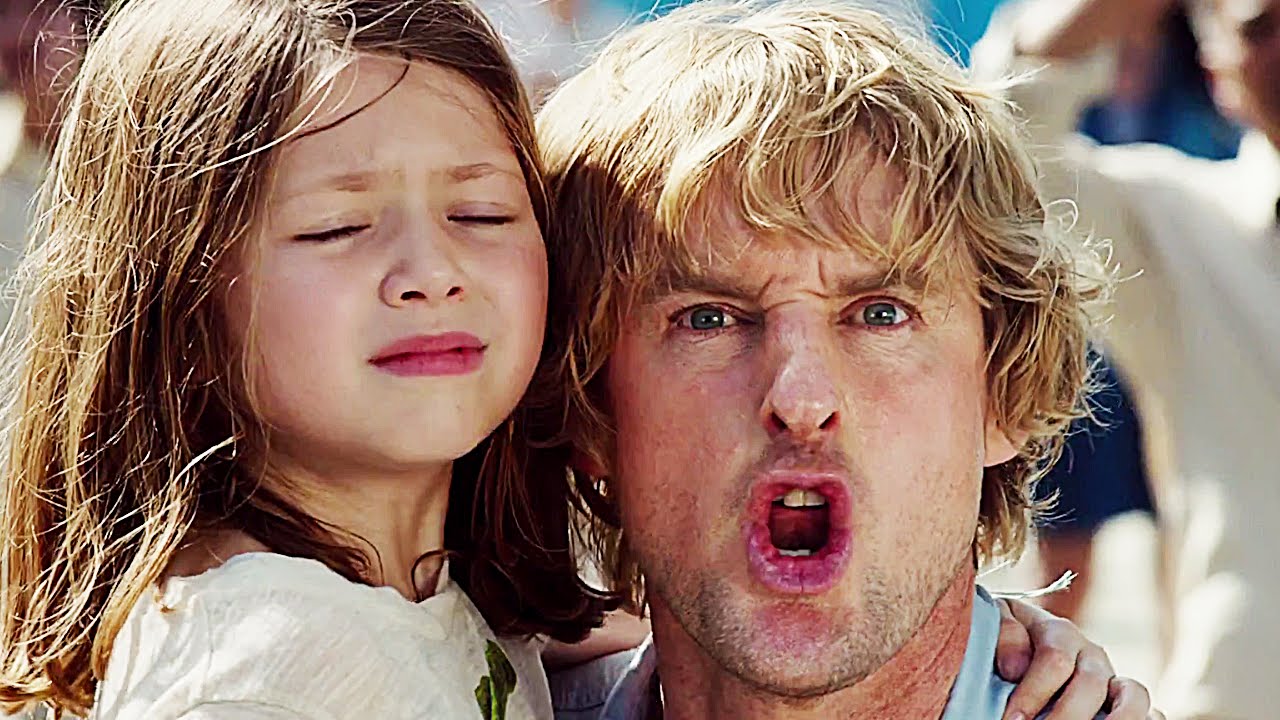 When I say “white people” I should say that there are one or two Asian characters who seek refuge with Caucasian hotel guests, but for the most part, it’s pretty “white.” There’s also an Australian, a French guy, and a couple of Brits, but the Americans last the longest, primarily thanks to Owen Wilson throwing his screaming children across buildings with the help of a nameless Asian man who will not be joining them. Literally, we see 4- and 6-year-old girls being thrown against their will from one parent to the other.