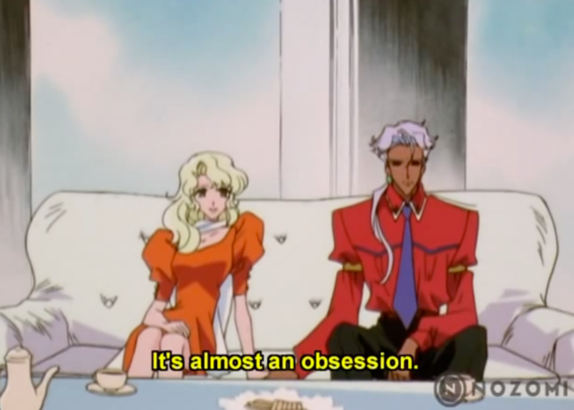 Akio Ohtori has a long purple ponytail, and is the acting chairman of the school. The father of Kanae, his blonde-haired girlfriend, is the actual chairman of the school. They meet and chat with Anthy and Utena, but upon first viewing, there seemed to be some unspoken tension between Anthy and Kanae. Wonder if that’ll be important later!