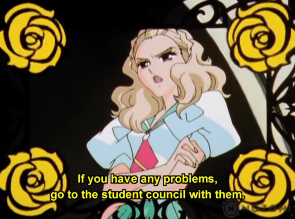 Nanami overhears this and gets mad, because she cannot understand why Anthy is so “popular” amongst the “boys” (or rather, student council boys). In her head, it’s come at a social cost to her, so she decides to try and peel back Anthy’s mask to reveal her for the unlovable person she actually is.
