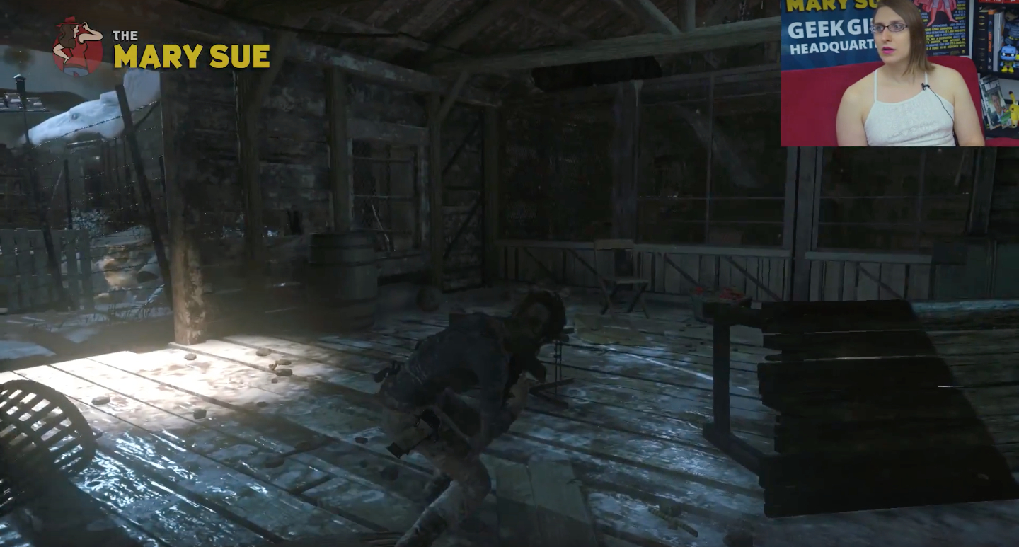 This week, Lara has to puzzle-solve and then shoot her way out of this enemy territory. First she solves a quick escape-the-room situation with her rope arrows, and then a guy with a gun shows up and Lara has to kill him. And then she’s gotta kill all of his buddies, too. Ain’t that always the way of it?