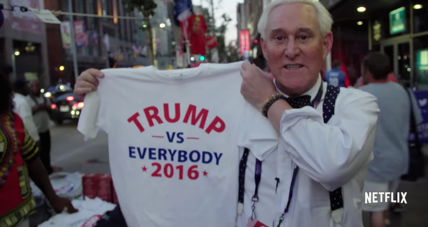 Roger Stone, Trump’s former top advisor who quit/was fired from the campaign last summer, is getting his own Netflix documentary this May. This is a man under investigation for colluding with Russia to put Trump in office, a man with an affinity for dressing like a ““low budget movie villain,” who has described himself as a “dirty trickster, and who has a tattoo of Richard Nixon’s face on his back (seriously). He is not a good man.