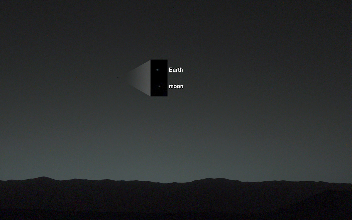 Here’s an enhanced view from NASA of what the Earth and the moon look like from Curiosity’s lonely, cold vantage point on Mars: