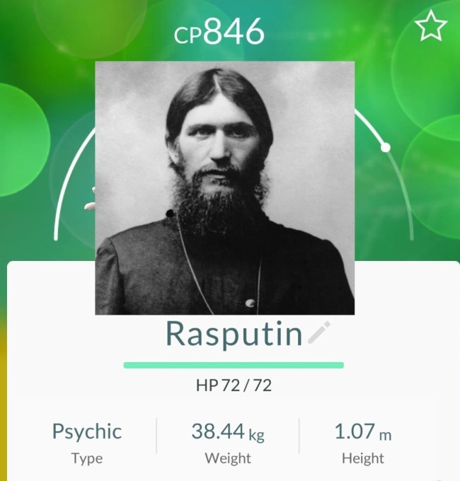 I’m all for making history more entertaining using a fun mobile game as long as the locations are appropriate ones. I mean, the Triangle Shirtwaist Factory is a stop on Pokémon GO so….yeah. Anyway, I would love to see this idea spread to more places, mainly because I also made a Rasputin edit before remembering he’s really more of a Saint Petersburg figure.