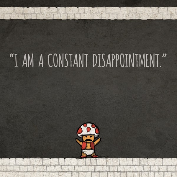 Toad, Toad, come here. You’re my go-to guy in Mario Kart. You’re Princess Peach’s right-hand shroom. We’ve all had days like that, buddy. It’s going to be okay.