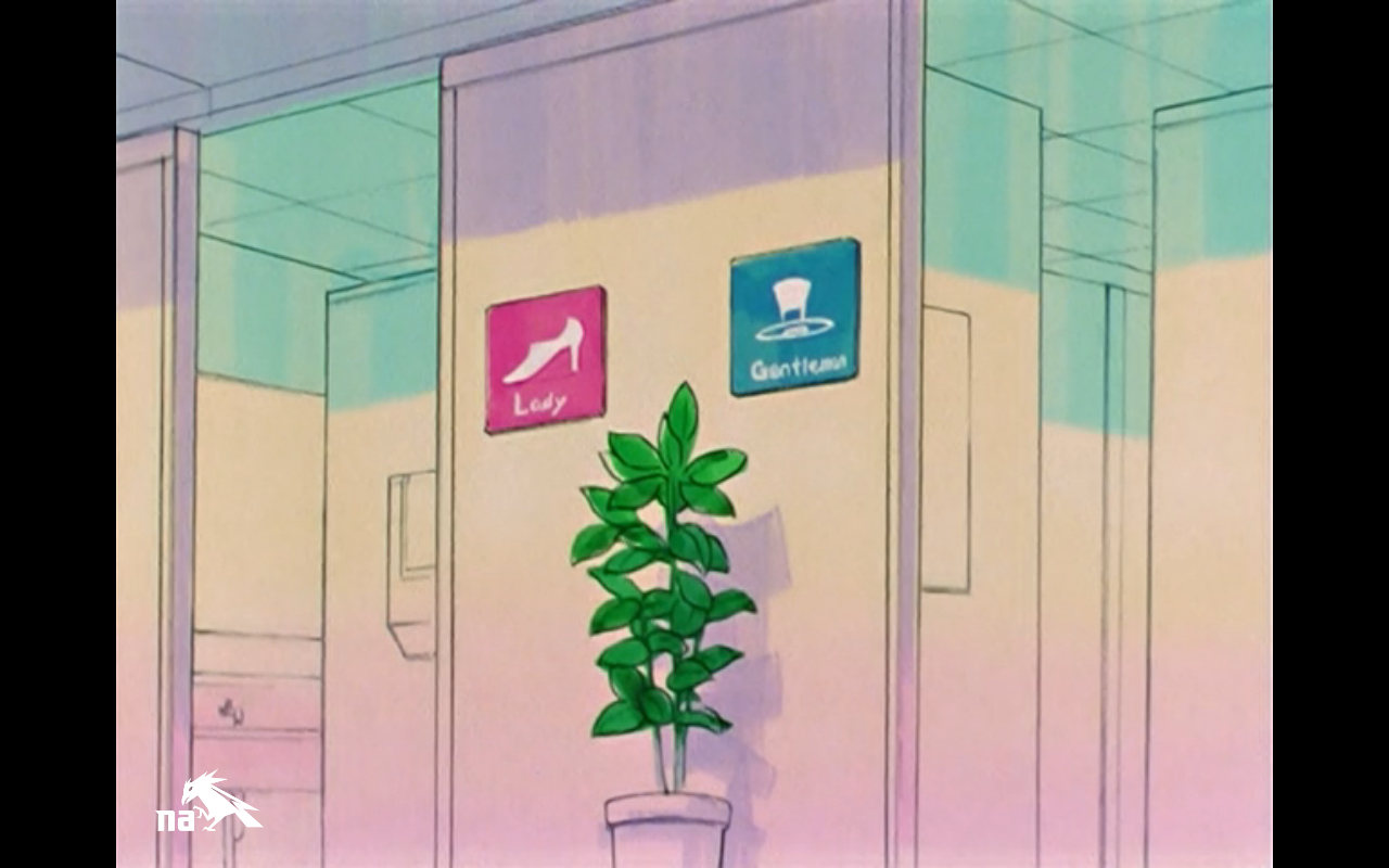 When confronted, Derela is so scary that Usagi has to go take refuge in the bathroom for a bit before turning into Sailor Moon. And by the way, the men’s bathroom at this theater is FOR TUXEDO MASKS ONLY. He’s probably in there right now, changing his costume, too. But even after transforming, Derela still gets the upper hand, encasing Sailor Moon in glass from her… glass breath weapon? But wait. Something momentous is about to happen.