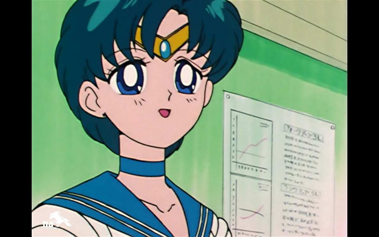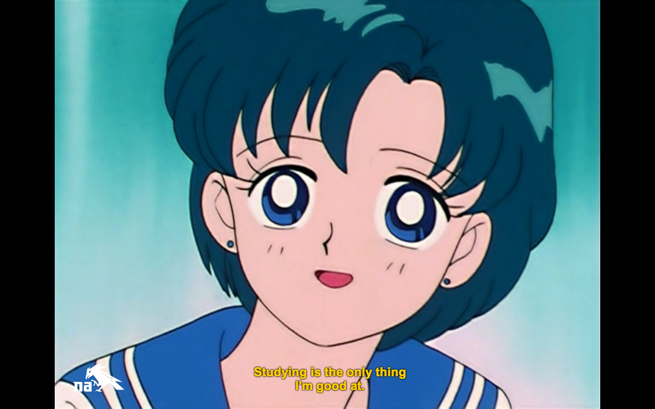Usagi invites Ami to come play some games at the arcade, and, holy smokes, Ami is so good at the Sailor V game that a crowd forms. But cram school time approaches, so she has to jet out of there, leaving Usagi with an apology and this final statement: