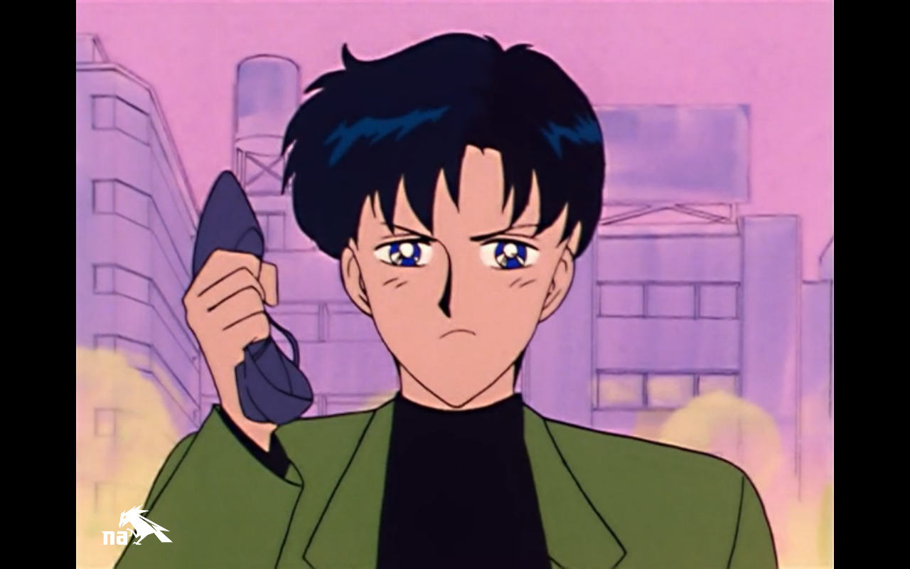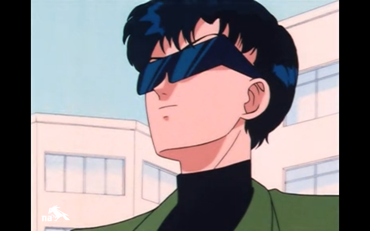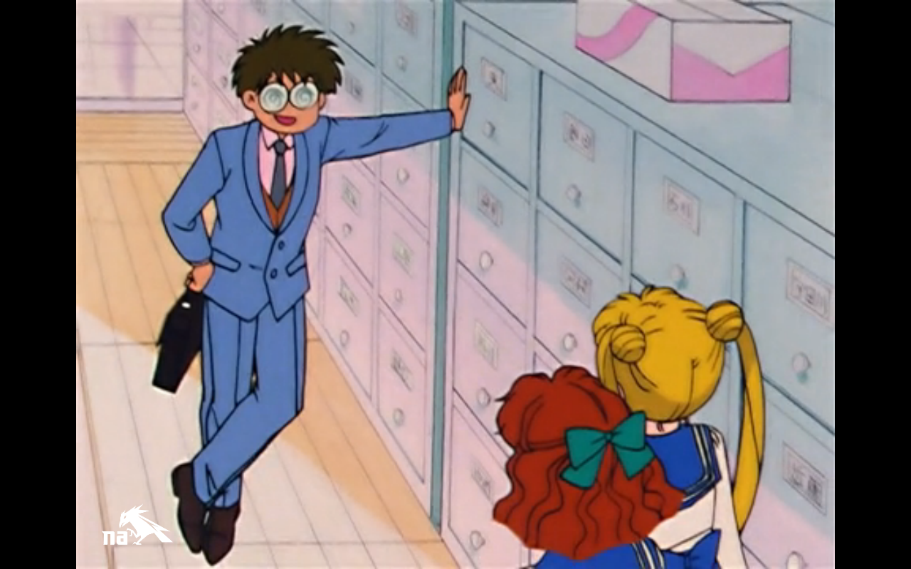 Fortunately for Usagi, she manages to escape being trampled by bargain hungry women and from possessing any cursed jewelry, because she’s broke and certainly can’t ask her parents for money: she just failed an English test quite poorly. Then a grown man appears and insults her hair. Cards on the table: I know how things turn out with Mamoru. I know he’s . I just reserve the right to make fun of the big dork until that happens. As Usagi stomps off, Mamoru gives the jewelry shop the ol’ CSI: Miami stink-eye.