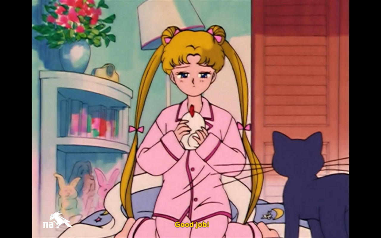 - Right, so Usagi is the leader of a group of four or five buttkicking female superheroes who derive their powers from celestial objects, related to some kind of Moon-based monarchical system. She’s guided by an animal companion, Luna, who basically started the keyboard cat meme. In their secret identities, they all go to school together and hang out at an arcade where they all crush on the cute, young (but NOT young enough for them, kinda ew) owner.