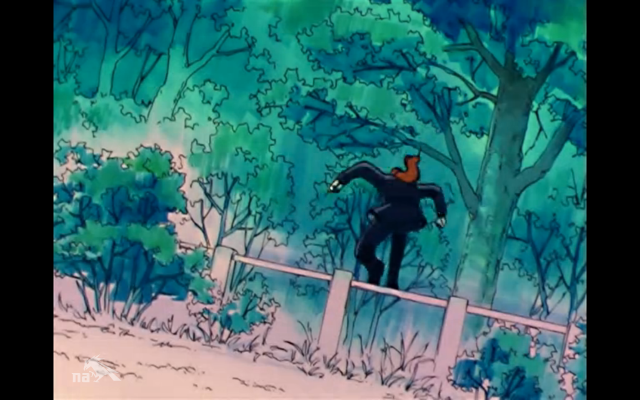 That’s because we watched the episode opening, in which Zoisite showed up to extract the indigo Rainbow Crystal from Rei’s grandpa, only to be flummoxed by his mystical grandpa powers. Now we know where Rei gets it from, I guess. But before Zoisite could be driven off the premises by Rei’s two ravens (“What are you doing?” he shouts, “I’m not garbage!,” and I laughed and laughed), he manages to partially awaken the Great Youma within him. Hence all the mood swings and an enjoyment of swinging through trees: the Great Youma Jiji seems to be at least partially ape-like or ape-inspired.