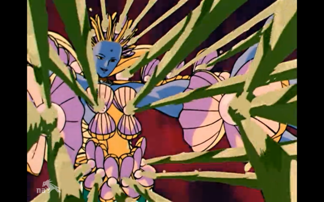 Then Shakokai gets a face full of cat (+10 points for any episode where Luna and/or Artemis mess up a youma’s face), and the Senshi dash out of the room to transform. But as is so often the case these days, the usual powers don’t work on Shakokai’s laser targeted boob clams (I KNOW I SAID I WOULDN’T MENTION IT AGAIN). I know the Senshi get bigger, badder versions of their powers at some point, seems like now would be a good time. Cue Endymion, because even when he’s evil, Tuxedo Mask knows the rhythms of a Sailor Moon episode.