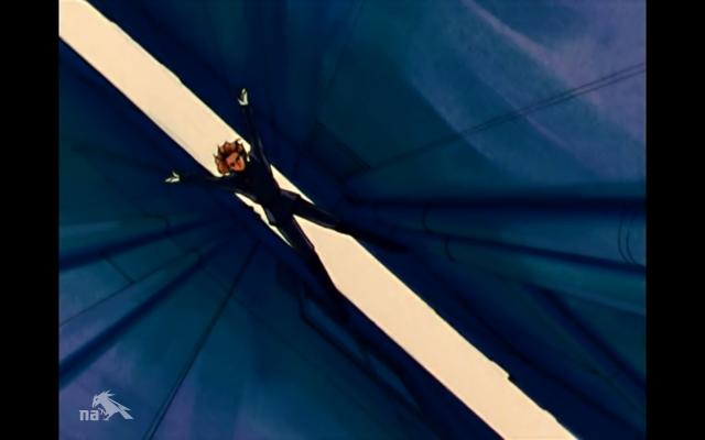 Nevermind, it’s a rose. Tuxedo Mask trots down, picks up the Rainbow Crystal, and trots off with it. Zoisite follows, yelling “Curse you, Tuxedo Mask! Come back! Come back, I say!” and neither of them are seen again in this episode. Rei, Luna, and Bakene stare after them in disbelief. Not a joke.