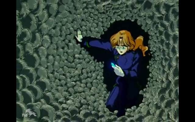 This doesn’t leave Luna and Rhett Butler much time to have a tender moment where Luna figures out what we’ve known from the get go, given Sailor Moon‘s well-established themes: the reason why Rhett Butler saves her all the time is because he like likes her. Because now Zoisite is hot on their tail, and hot on his tail is a MASSIVE HORDE OF RATS. Luna manages to cram Rhett Butler into a small access tunnel, hoping that Zoisite won’t be able to follow.