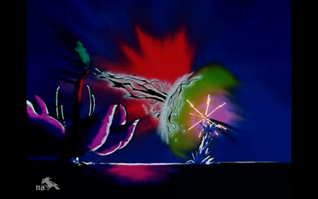 Giant Queen Beryl attempts to smash Usagi with ice, but really only gives her a sweet platform so that they can be eye to eye for the real business: magical beams of power in opposition.