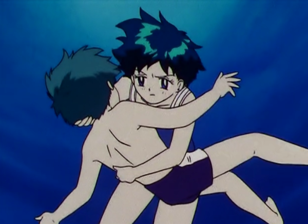 Tiger befriends a dolphin and approaches Ami and Shingo when they’re out rafting. He thinks drowning Shingo will really set the mood, and is very confused when Ami ignores him and instead dives in to save the drowning child (although seriously, why would you let someone who can’t swim go out into the ocean without a life vest? IRRESPONSIBLE, Sailor Moon.)