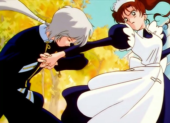 The School Festival is good times until Taiki and Yaten start stalking C.C., because while they still don’t see the princess, they sure can censer. (…Yeah. Sorry. That one hurt even me.) Mako rushes to C.C.’s defense, but continues to be as useless as all of the Moonies have been this season. She’s easily handled by Yaten, who also manages to work in a couple sexist digs along the way, just ’cause he wanted to give me more reasons to dislike him.