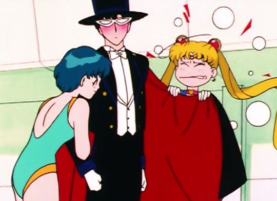 Tuxedo Mask notes that she seems to be feeling better, and she tells him she’s decided not to doubt herself anymore. Usagi’s a liiiittle concerned that Ami might be crushing on The Tux, and Ami teases her about it, but it’s pretty clear she’s just kidding. So not only did Ami gain new confidence in herself and her friendships, but ol’ Zero Friends finally got himself a buddy, too! Best week ever!