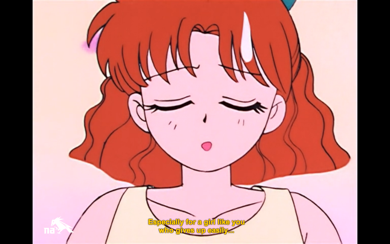 Next is Usagi, who goes straight to complain to Ami about how Rei was trying to use her own mother to cheat and doesn’t that just grind your gears? “Not really,” answers Ami, “I don’t plan on getting married any time soon.” <3 <3 <3 Usagi begs for Ami’s help with making a dress: as a girl genius, Ami strives to be good at every class, so of course she knows all about sewing. Ami cleverly dissuades Usagi from this path by handing her six large tomes of beginner sewing books and telling her to come back when she’s grasped the basics. Naru joins a dejected Usagi as she trudges off to her last ditch idea: beg after school guidance from Ms. Akiyama. Naru is surprised that Usagi would go this far out of her way for the contest.