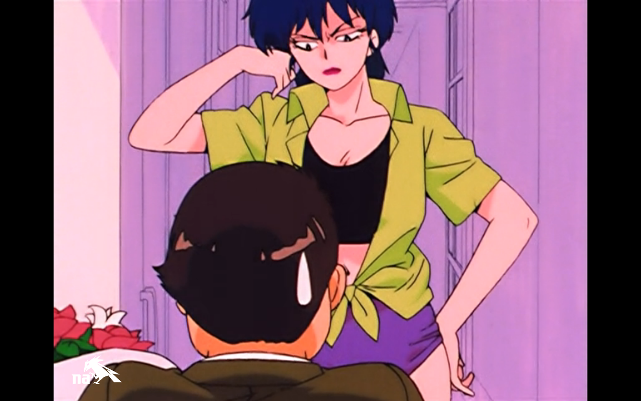 In a beautiful city park, Rei and Usagi meet Ami’s good… acquaintance Mr. Kokuritsu, the gardener who looks after all the plants and animals in this vital piece of Tokyo greenspace where young lovers can come to have romantic moments. But not for long: Mr. Kokuritsu will be let go soon, as there are plans to bulldoze the park to build an office building, displacing all the cute animals and beautiful plants. “Shit,” says Rei, “That means I don’t have a lot of time to find a boyfriend and get his ass over here.”