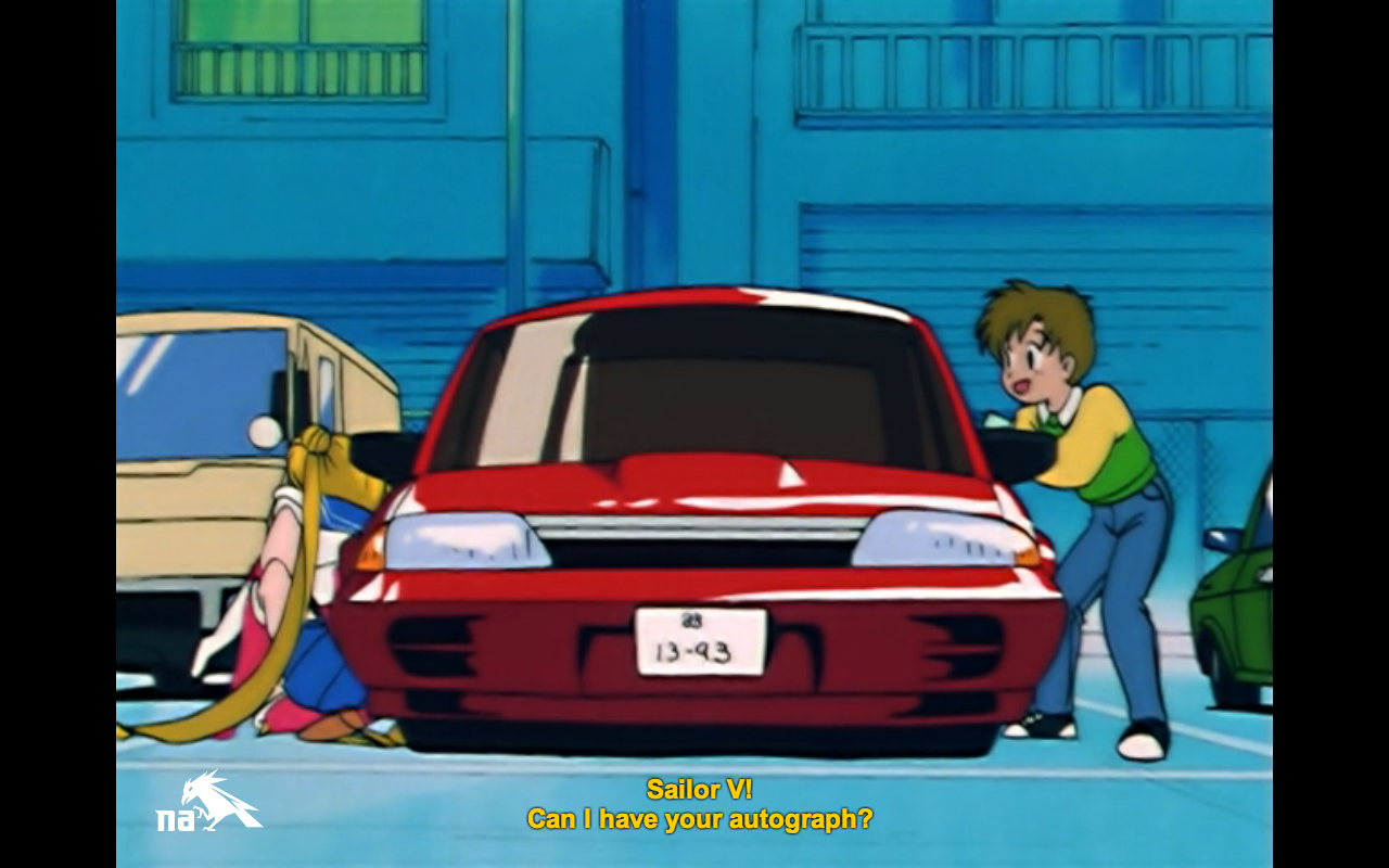 Shingo totally fan-persons out on Sailor Moon, mistaking her for Sailor V. But it’s alright, even after he’s corrected he still thinks she’s pretty cool. She tells him that she wants him to be nice to his sister’s cat from now on, wrapping up the B plot in a nice little crescent-shaped bow.