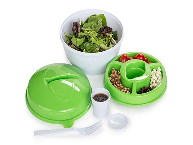 The Salad-to-Go container separates your leafy greens, toppings, and dressing into separate compartments, ensuring your salad doesn’t get soggy by lunchtime, and leaving plenty of room to mix everything in when you’re ready. It even includes a clip-on fork so you can nosh on the go. Not feeling salad? Use the bowl to separate the ingredients of any dish.