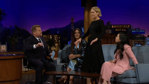 Ocean’s 8 cast members Sarah Paulson, Sandra Bullock, and Awkwafina went on The Late Late Show with James Corden to talk about their secret talents—Awkwafina about her rapping, Bullock about a very cool dance gig she used to have, and Paulson about her “mom dance.” I haven’t yet seen Ocean’s 8 (but Vivian gave it 3/5 diamond necklaces), but I hope they never stop the press tour because watching Paulson and Bullock act like Awkwafina’s supportive moms (Paulson’s “Don’t look down!” made me instinctively correct my posture) is amazing, as is another clip from the interview where Paulson and Bullock giggle over pronouncing George Clooney’s name as “Jorge Cloons”.