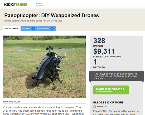 For example, dropping $250 for “a die-cast metal replica of the first Mobile Black Site” seems like something people might do. Another project, the Panopticopter, would provide a DIY surveillance drone kit for a mere $500. Who hasn’t wanted a homemade surveillance drone from time to time?