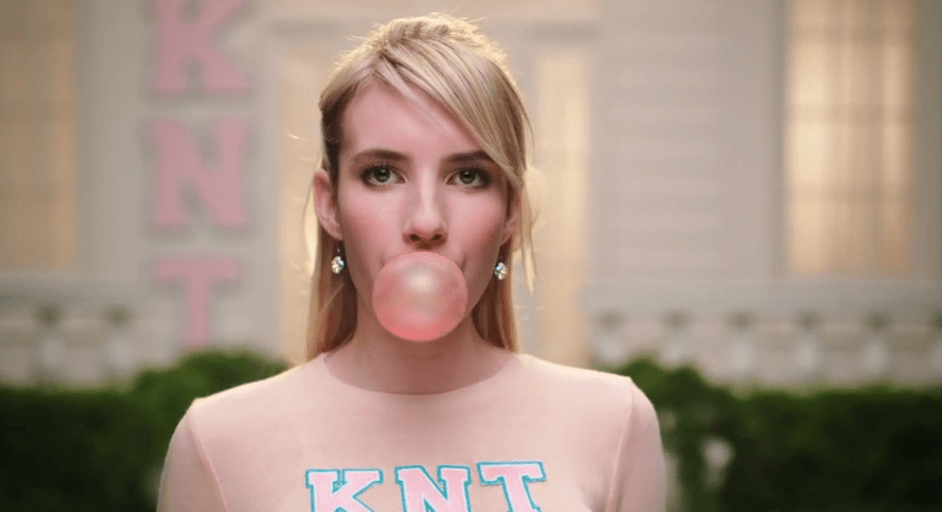 This thing is starting out with exactly the level of camp we expected when we first heard the words “Ryan Murphy horror comedy.” Which is to say an abundance. There is literal bubble gum involved.