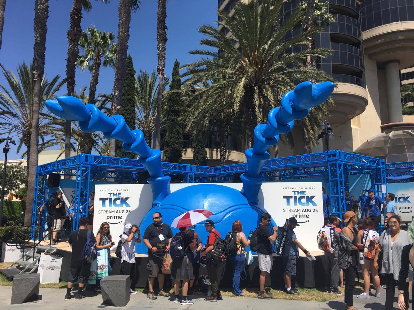 Comic-Con audiences got the first taste of the show in a panel attended by the cast as well as “The Tick takeover” installation across from the convention center. Fans were able to watch the premiere episode in the comfort of an exclusive lounge and join The Tick and Arthur on a scavenger hunt to battle the nefarious pyramid gang. The centerpiece of the activation was the animatronic Tick antennae visible from blocks away and which fans could control depending on the mood they chose for The Tick. The installation fit the mood of the Tick, a joyful, helpful force in a messy, grim world both on screen and off.