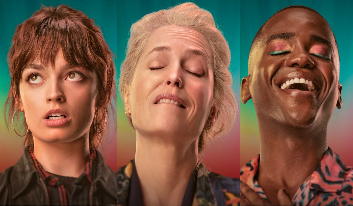 The eight posters were released onto Netflix’s and the show’s own X (formerly Twitter) accounts with the caption “*come* and face the music.” They featured members of the cast pulling some pleasurable faces, including Gillian Anderson (Jean Milburn, Emma Mackey (Maeve Wiley), Ncuti Gatwa (Eric Efflong), Asa Butterfield (Otis Milburn), Connor Swindells (Adam Groff), Aimee Lous Wood (Aimee Gibbs), Chinenye Ezeudu (Vivienne Odusanya), and Mimi Keene (Ruby Matthews).