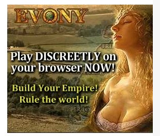 I’m just going to go out on a limb here and assume that, as users of the internet, you have seen ads for Evony. It seems like only yesterday that they started popping up on just about any site with adspace. It was also painfully obvious that the game’s creators were getting more and more desperate with each passing day. As this blog post documents, the ads got sexier and sexier (and not in a good way) until it reached a fevered level of overexposure — both the number of ads and square footage of skin. Thankfully this ad campaign seems to have dropped off the edge of the world for now, but I can’t help thinking that Evony is still out there. Watching, and waiting.