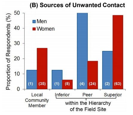 The study goes on to suggest that many labs don’t make an effort to inform trainees and other employees of their sexual harassment policies, if they have one at all. Of those scientists who responded to the survey, only 38% reported knowing of any code of conduct at their field site; a mere 22% were aware of any sexual harassment policy, and only 20% actually knew how to officially report a transgression. Oddly, men were also statistically more likely to know about their field sites’ harassment policies than women were (30% vs. 20%).