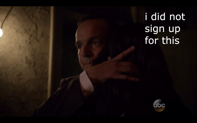 Season Two Skye, meanwhile, keeps playing with my emotions; half the time she’s the annoying know-it-all Skye from last year (“Tell me everything! I’m going to Spy Daddy’s secret hideout alone! I know best!”), but the rest of the time she’s actually showing signs of emotional maturity. The breakdown in Coulson’s arms was one of the most real, in-depth character moments I’ve seen from Skye ever—and she does have a theory about what’s going on with Coulson’s crazy drawings, so I can’t stay mad.