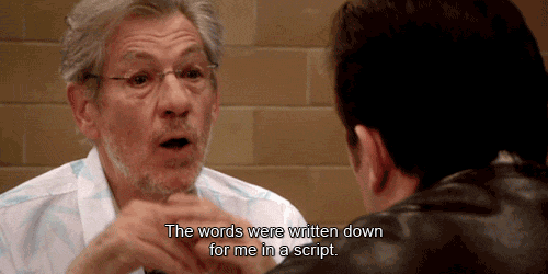 Much of the interview focuses on McKellen’s own quest towards getting closer to the truthfulness of himself in his craft and in his own life, which is a beautiful message—and also a delightful one when taken in turn with his comedic chops in this scene from Extras, from whence the gif above hails. McKellen certainly seems to have a handle on the honesty required for both comedy and drama—as well as the honesty required when discussing social issues. Bravo as usual, Sir Ian!