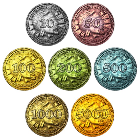 Inspired by the Fallout and Mass Effect boards, Bennett thankfully took us to Skyrim. The board measures in a 20 by 20 inches, and can even be printed out and stuck over a regular, plain Monopoly board which is about trains or sewing or something. Obviously, dragon shouting is way cooler than sewing. Check out the coins!