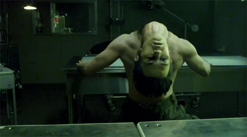 But then. What light through yonder window breaks? It’s Andy coming back to life and flailing around the morgue, his head still in Pez dispenser mode. That would be this episode’s Headless-Horseman-with-an-automatic rifle moment, then. His head snaps back into position, and the devil thing tasks him with resurrecting the witch.