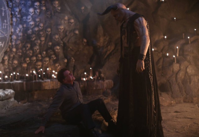 Those two pics are from the October 27th episode “And the Abyss Gazes Back.” Below is one non-yoga pic, from October 20th’s episode “The Weeping Lady,” because I really like Moloch’s interior design choices. It’s like he’s an Associate Manager at Hot Topic in the mid-’90s who came across unlimited money.