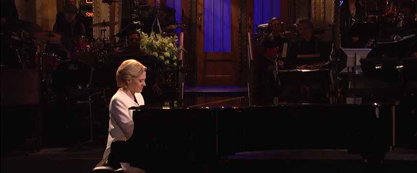 Sometimes, there are moments when even the best jokes can’t really sum up what everyone seems to be feeling. Sometimes, only music can accomplish that. When SNL opened last night’s episode with Kate McKinnon sitting alone at a piano, dressed in-character as Hillary Clinton and singing “Hallelujah” by the recently-passed Leonard Cohen, it was moving in its simplicity.