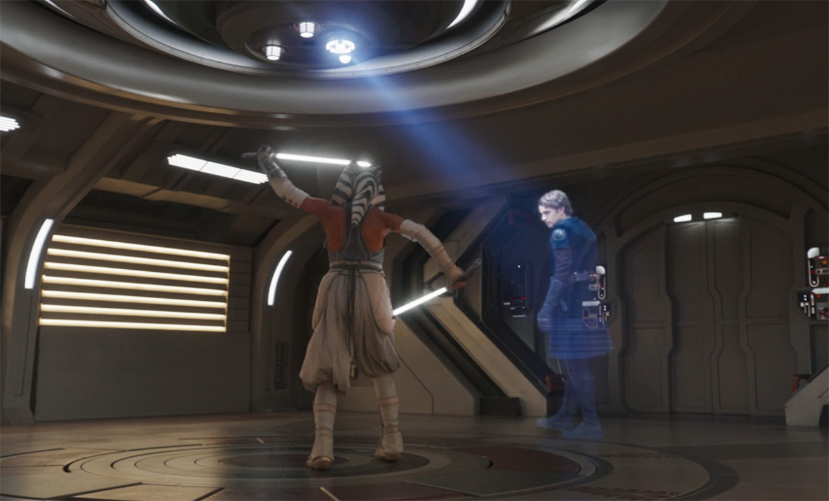 She is, however, training with Anakin and clearly has been. While Ahsoka (Rosario Dawson) told Huyang (David Tennant) that the video she was training with was the last one that he’d recorded for her in Ahsoka episode 7 “Dreams and Madness,” that doesn’t mean it has to be the end. And that means that I could have a lot more of Anakin Skywalker Jedi workout class sessions in my future?