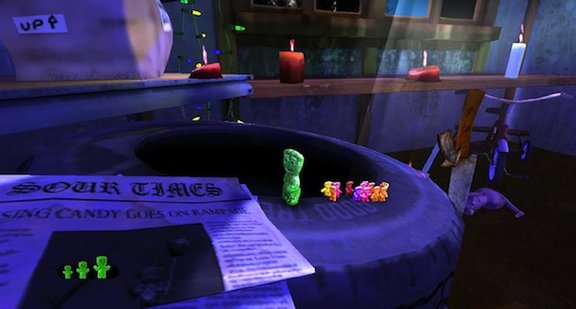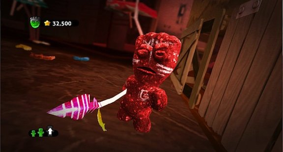 World Gone Sour will be based on a lost piece of candy, trying to find its way to candy nirvana, via platforming across movie theaters, concession stands, and probably other candy-themed areas. The game also features this guy, in Sour Patch Kid tribal paint: