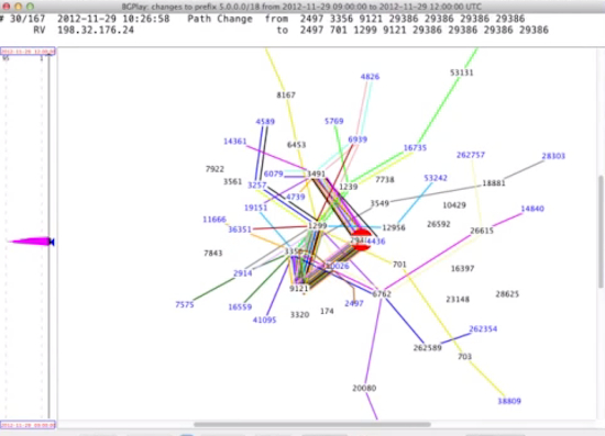 The systematic way in which routes were withdrawn suggests that this was done through updates in router configurations, not through a physical failure or cable cut.