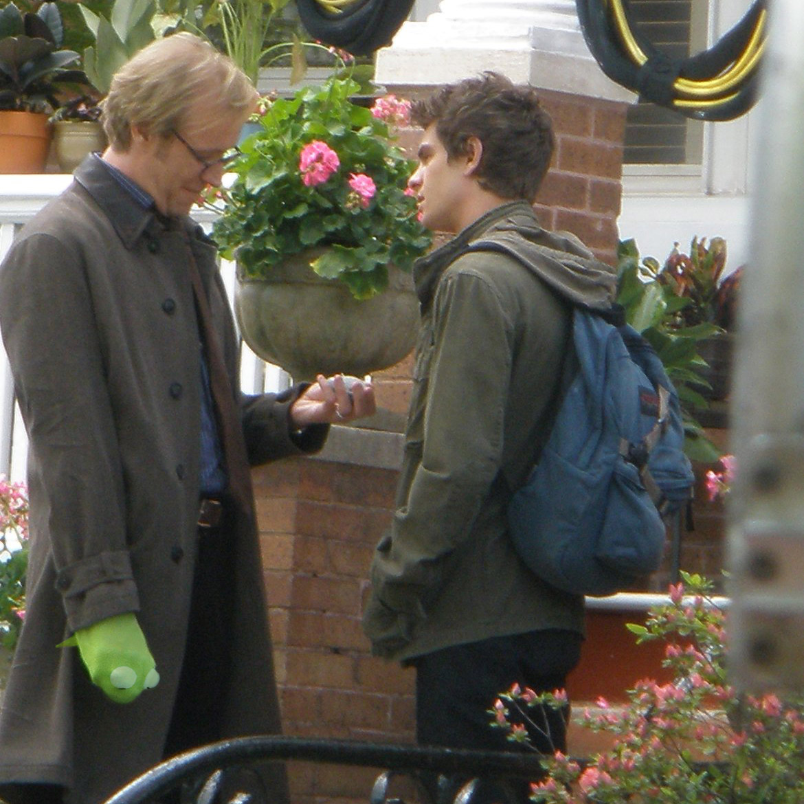 So, this picture from the New York City set of The Amazing Spider-Man has been making the rounds and it’s left people wondering about Rhys Ifans‘ hand. Namely: Is that Kermit? (Answer: No. Probably not.) Let’s speculate the pants off of this.